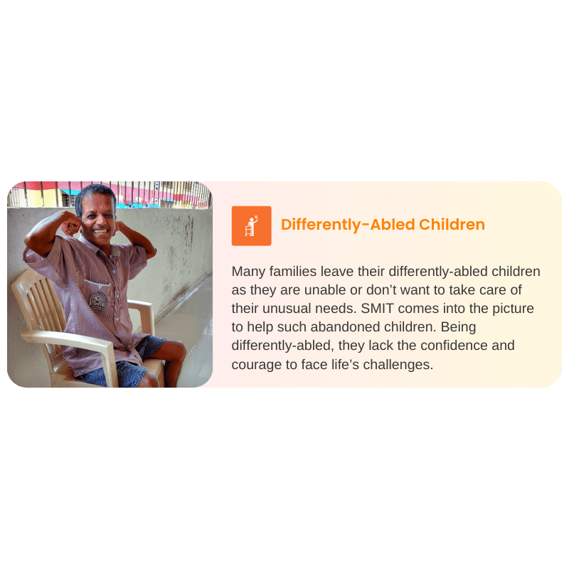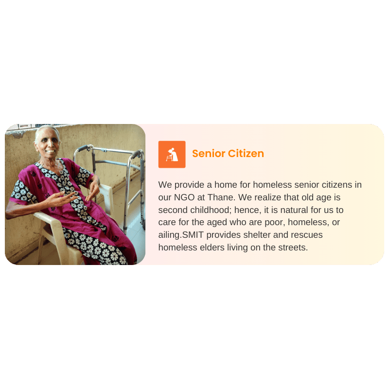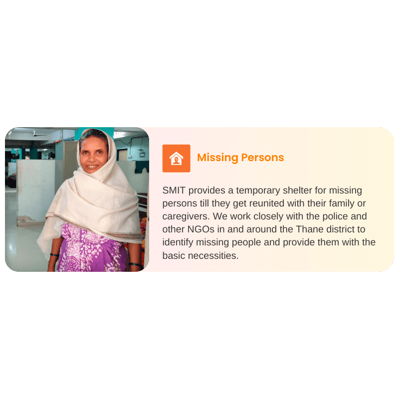 SMIT is an NGO currently based out of Thane, Maharashtra. We work for and provide basic necessities to the homeless, poor, differently-abled, and mentally ill people who have nobody to care for them, in the best way possible.