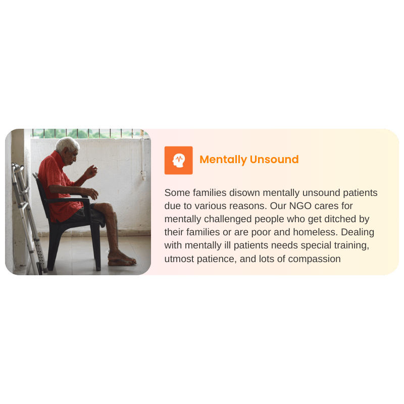 Miss Sakina was brought to us by the police, and we were told that they found her at the railway station by herself. She seemed to be in her early 50’s and wasn’t in the best state mentally. She told us she has two kids, who she referred to as Sonu and Monu, and a husband she lived with back in Fatehpur. She had no memory of her husband’s name, her address, or anything that could help us lead her back to her family. However, based on her accent, the police decided to search for her family in and around Madhya Pradesh and Uttar Pradesh, but to no avail. No one came forward to claim Miss Sakina.
