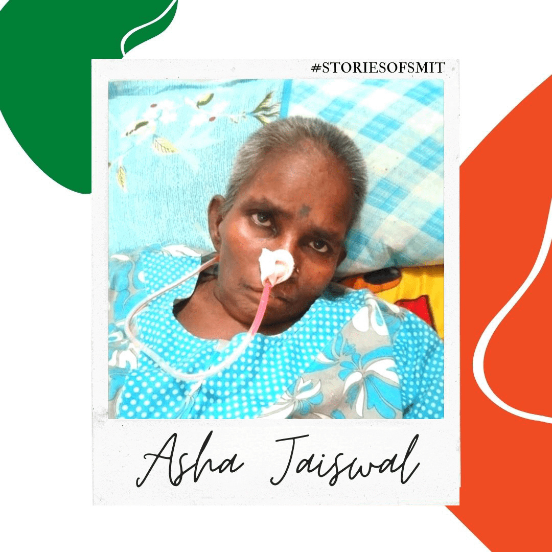 With every tender coconut sold, Ms. Asha Jaiswal aged a little, and before she knew it, old age had crept up on her. Her body gave in, and she resorted to sleeping on the streets by her cart. The dangers of living on the streets got to Ms. Asha, and she suffered a head injury, one that she could not get treated, as a result of which she lay in the streets at the mercy of passersby who would often feed her. The foundation Live to Give found her in these circumstances and got her admitted to a hospital. On getting her scanned, they found a tumour in her brain. After her treatment, they entrusted her to us at SMIT home.